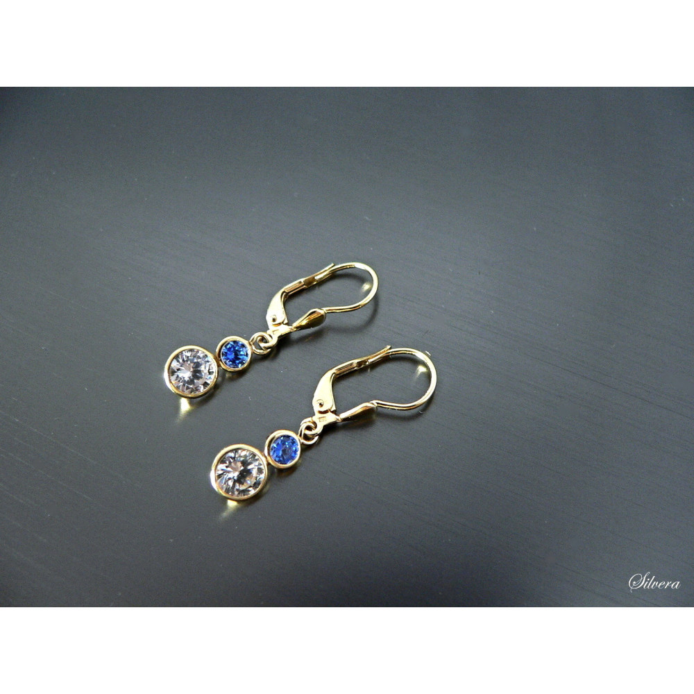 Stříbrné pozlacené naušnice DOUBLE ZIRKON, stříbro ryzost 925/1000